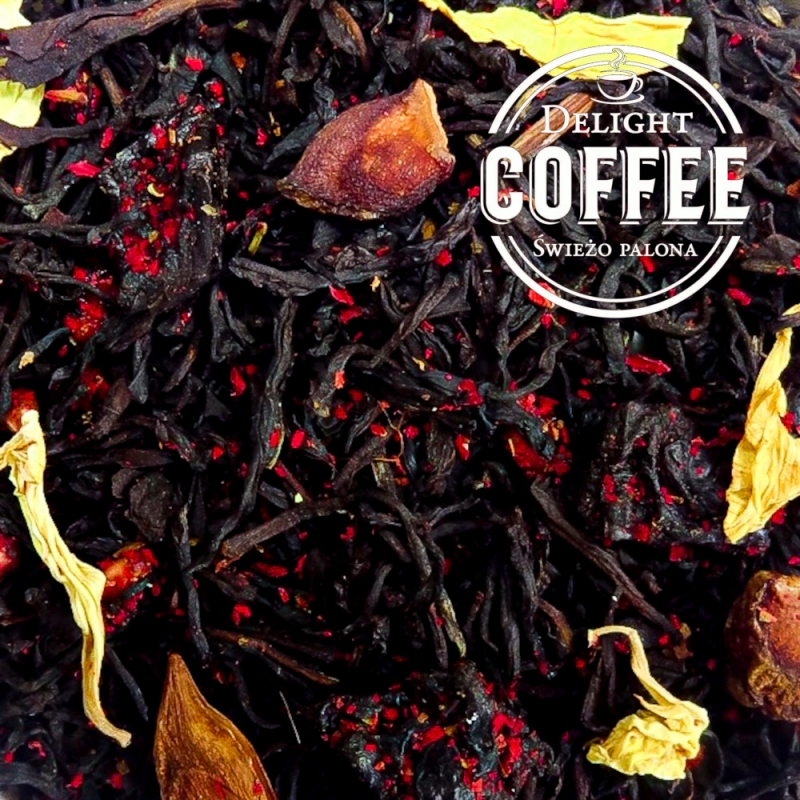 - Skład: herbata czarna Kenia Kangaita FOP, śliwka, granat liofilizowany, anyż gwiaździsty, kwiat granatu, aromat, kwiat słonecznika