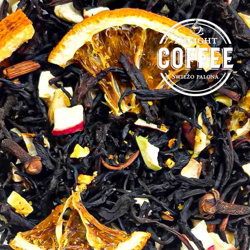 - Skład: herbata czarna Kenia Kangaita FOP, jabłko, mandarynka, pomarańcza liofilizowana, goździk, aromat.