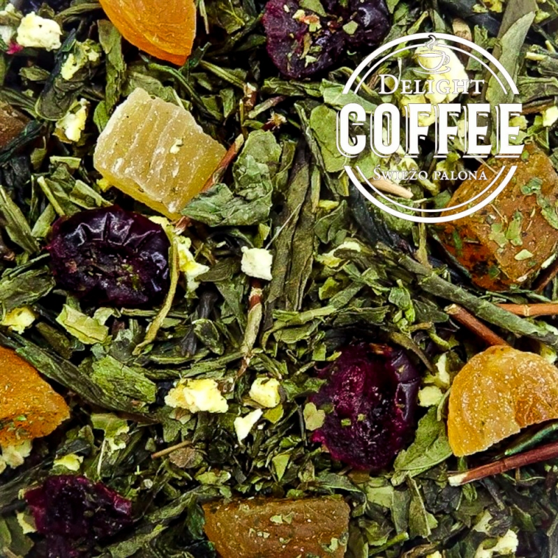 - Skład: herbata zielona, morela, żurawina, ananas, brzoskwinia liofilizowana, aromat