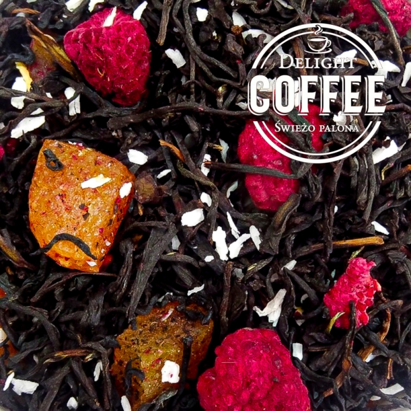 - Skład: herbata czarna Kenia Kangaita FOP, morela, kokos, malina liofilizowana, aromat
