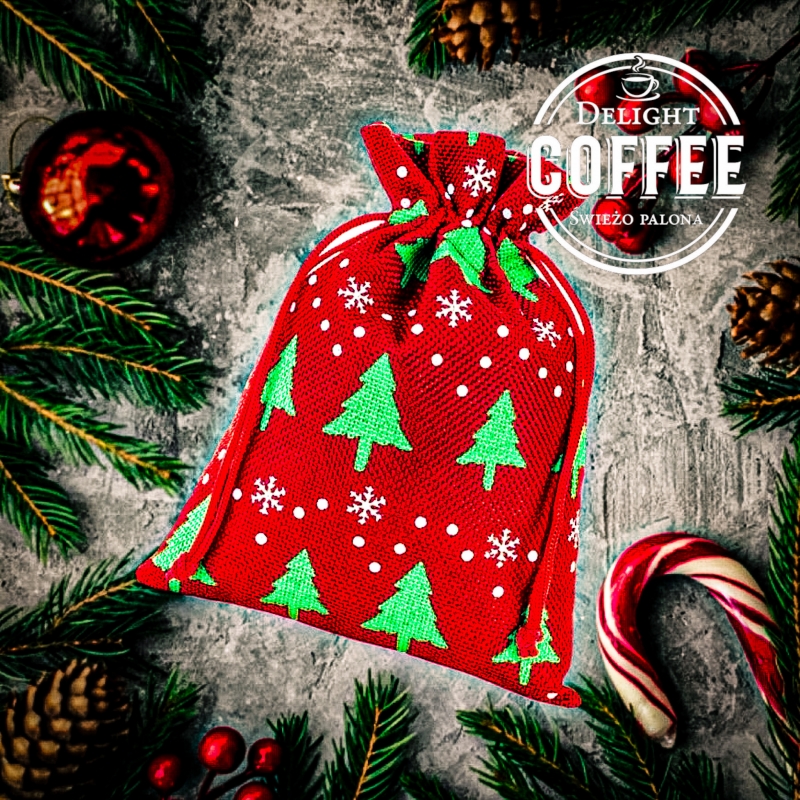 Zestaw prezentowy w ozdobnym świątecznym woreczku idealny na prezent od Świętego Mikołaja